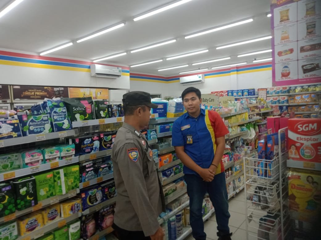 Sambang warga di salah satu minimarket di Loji, sampaikan pesan bersama waspada potensi kejahatan.