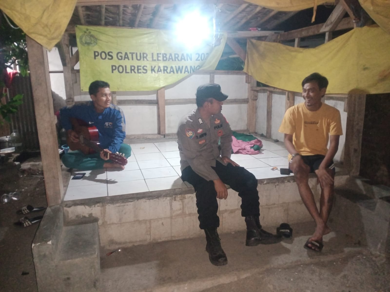 Dengan santai dan sambil ngopi di Poskamling, Bhabinkamtibmas Polsek Tegalwaru pun melaksanakan tugasnya sebagai pembina masyarakat.