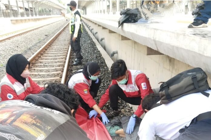 Bandung, bukaberita.co.id. – Laki-laki paruh baya di Stasiun Andir, Bandung tertemper kereta Feeder Bandung – Padalarang. Selasa (25/6).