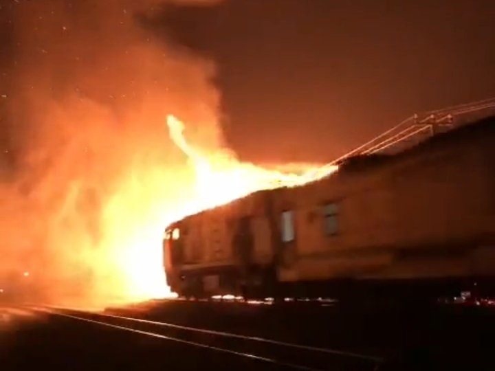 Menurut informasi, kebakaran tersebut berasal dari sebuah rumah di dekat jalur kereta. Kemudian, secara kebetulan kereta melaju melalui jalur tersebut.