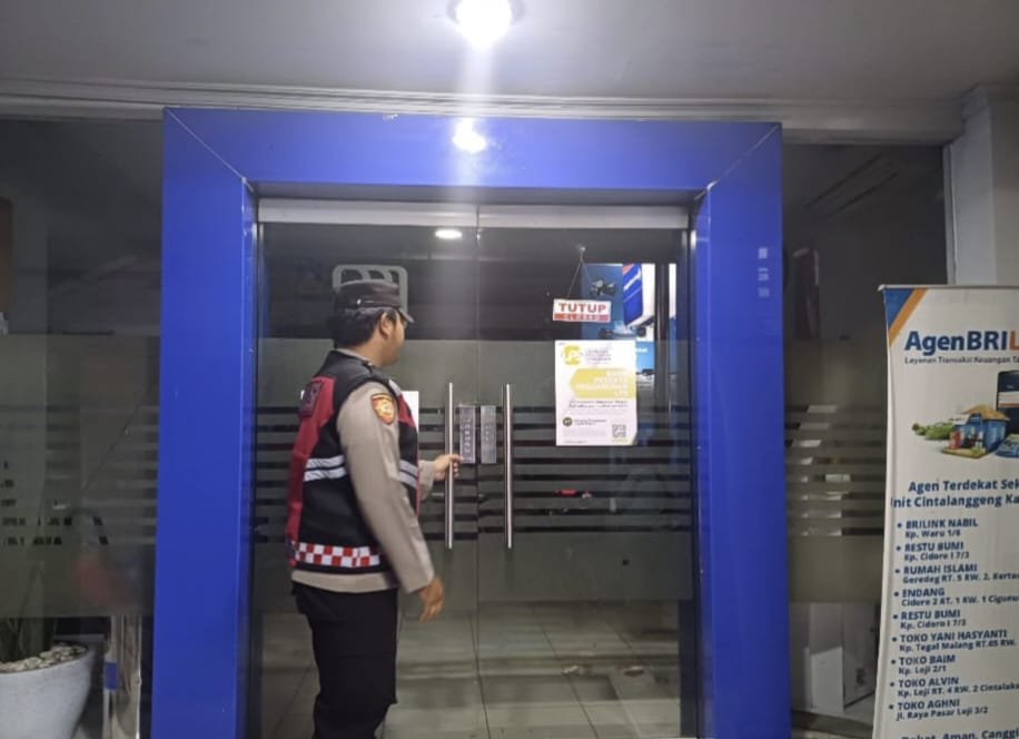 Rabu (11/9) dini hari, dengan Brigadir Adryan dan Briptu Eko petugas patroli Polsek Tegalwaru dini hari memeriksa dengan teliti kantor Perbankan yang ada di wilayah Loji pastikan pintunya terkunci dengan ATM aman.