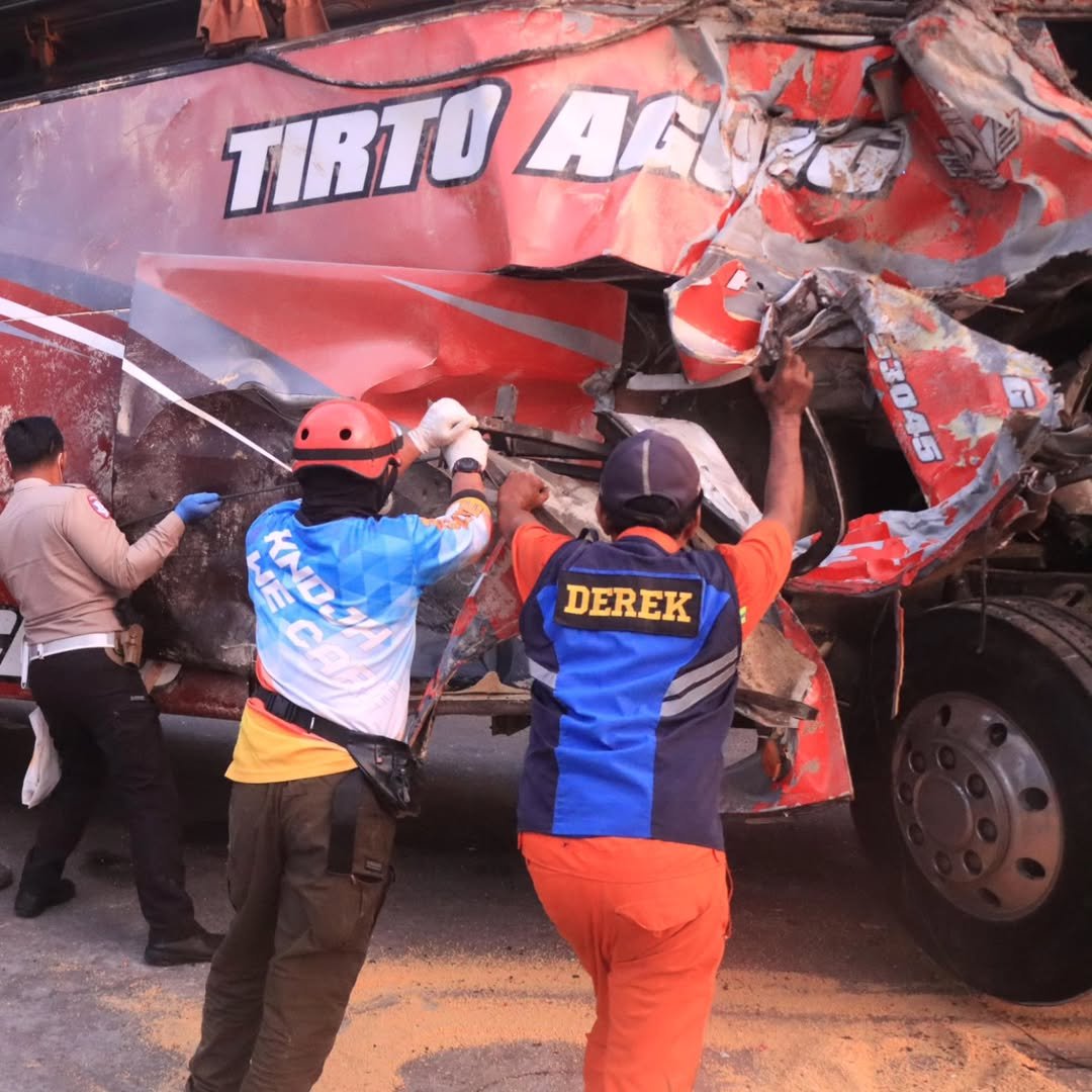 Malang, bukaberita.co.id – Insiden kecelakaan lalu lintas terjadi di Jalur Tol Pandaan-Malang, Kabupaten Malang, pada Senin (23/12/2024). Kecelakaan tersebut melibatkan sebuah bus Tirto Agung dan truk yang mengangkut pakan ternak. Peristiwa ini mengakibatkan 4 orang meninggal dunia, termasuk sopir bus. Polres Malang dan Polda Jawa Timur langsung turun tangan untuk menangani kasus ini.