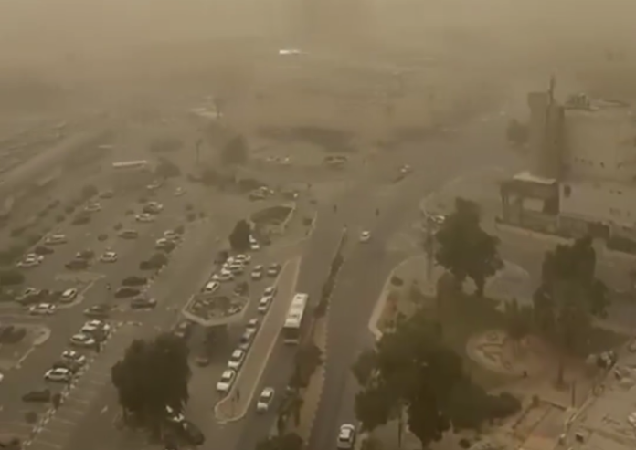 “Beginilah kondisi Pangkalan Shivta (di Negev) sore ini saat badai pasir yang tidak biasa melanda,” ungkap Channel 12 dalam laporan mereka.