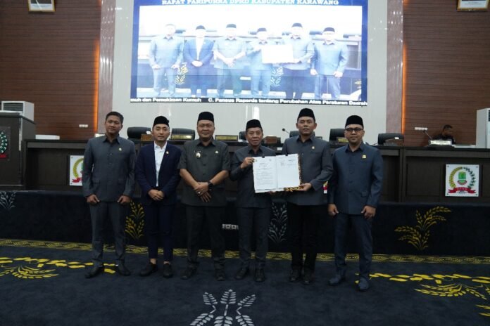 Karawang, bukaberita.co.id – Pada Jumat (2/5/2025), Dewan Perwakilan Rakyat Daerah (DPRD) Kabupaten Karawang menggelar Rapat Paripurna. Rapat ini berlangsung di Gedung Sidang DPRD Karawang. Kegiatan tersebut memiliki 3 agenda, yang pertama Persetujuan Laporan Keterangan Pertanggungjawaban (LKPJ) Bupati Karawang Tahun 2024. Kedua, persetujuan dan penetapan Rancangan Peraturan Daerah (Raperda) tentang pencabutan 25 Peraturan Daerah. Terakhir, rapat juga mengumumkan Masa Reses III DPRD Kabupaten Karawang Tahun Sidang 2024/2025.