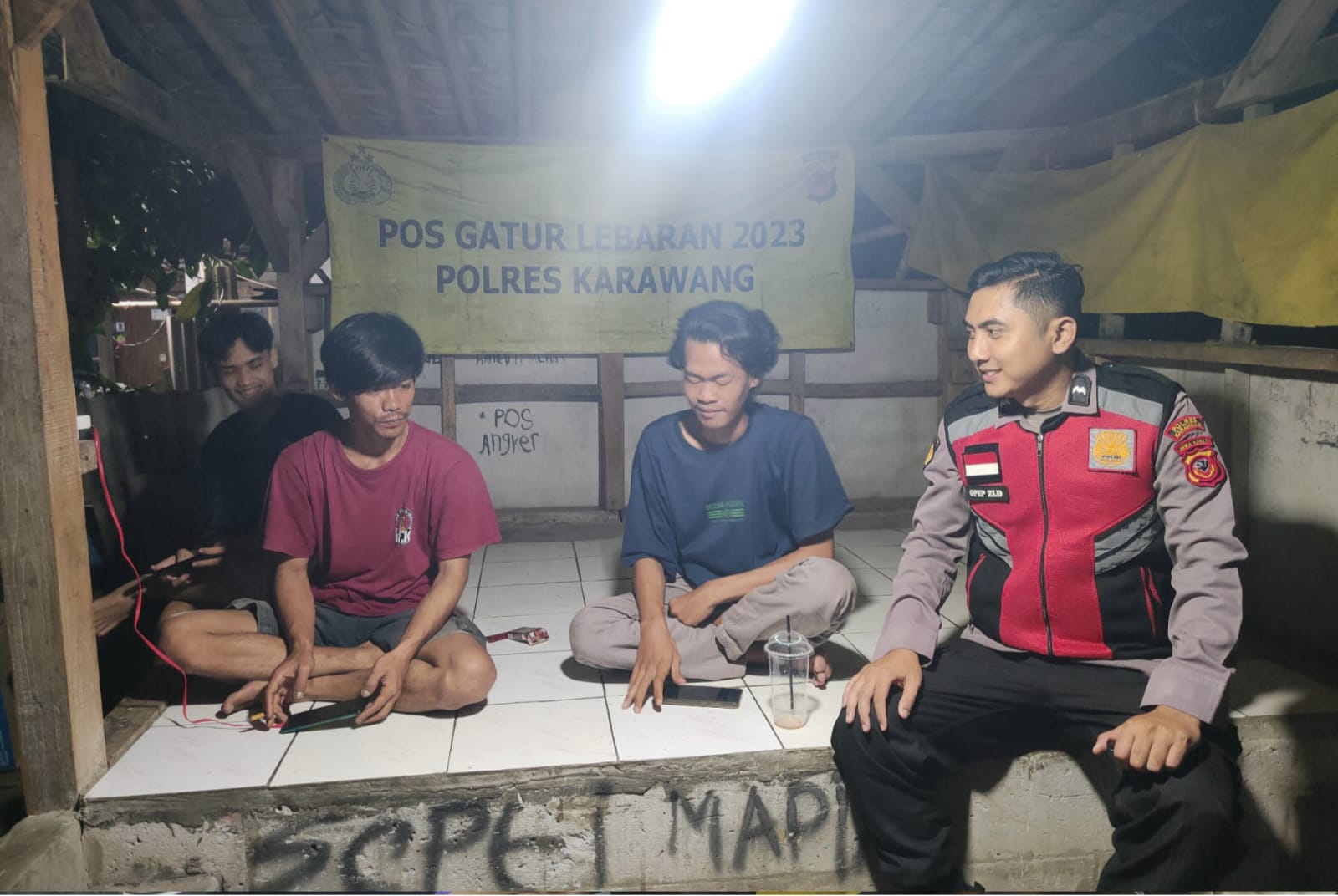 Sampai dengan bhabinkamtibmas Polsek Tegalwaru sambang warga di Poskamling kampung Kirewok Desa Cintalanggeng itu berlangsung.