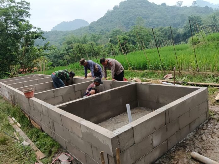 Bhabinkamtibmas Polsek Tegalwaru, Aipda Arief Awaluddin melaksanakan monitoring Ketahanan Pangan hewani jenis belut di Desa Cintawargi Kecamatan Tegalwaru.