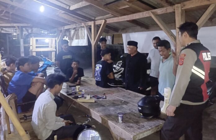 Bhabinkamtibmas Polsek Tegalwaru sambang warga di Kampung Kaumulus Desa Cinta laksana ajak warga peduli keamanan dan menjaga ketertiban. Selasa (3/6) malam tadi.
