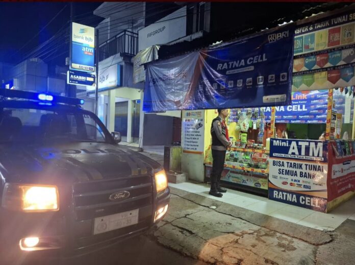 Personel Polsek Tegalwaru tengah melaksanakan patroli malam dan sambang warga dan ngobrol santai bareng mereka dan ingatkan mereka waspada di salah satu pelayanan pengiriman uang. Minggu (22/6) malam tadi.