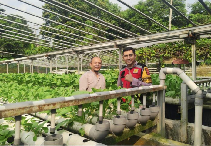 Bhabinkamtibmas Polsek Tegalwaru, Aipda Yuspan melaksanakan monitoring Ketahanan Pangan Hidroponik Farm di Desa Cintalaksana Kecamatan Tegalwaru.