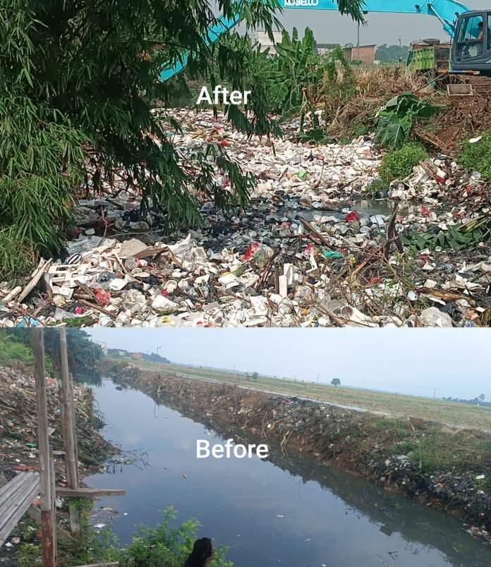 Buktinya, genangan sampah sampai puluhan meter di bersihkan hingga kini kondisi saluran tersier di wilayah Buher, Karangpawitan Karawang bersih.
