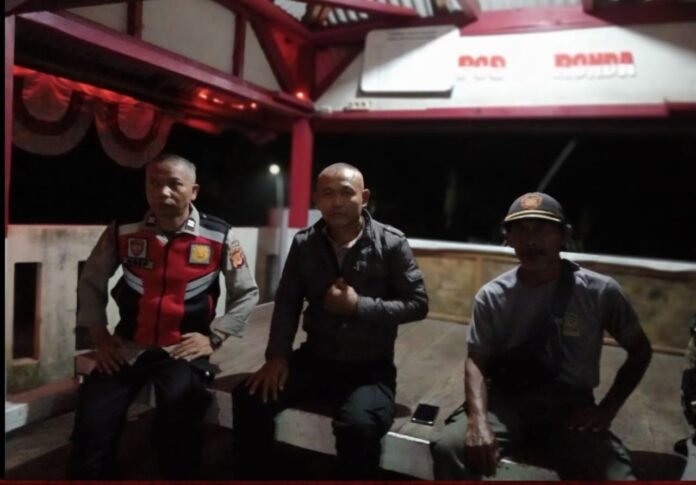 Berlangsung di di wilayah Kampung Palasari Desa Kutalanggeng melaksanakan giat monitoring dan edukasi pencegahan aksi kejahatan secara dialogis kepada masyarakat pada patroli malam.