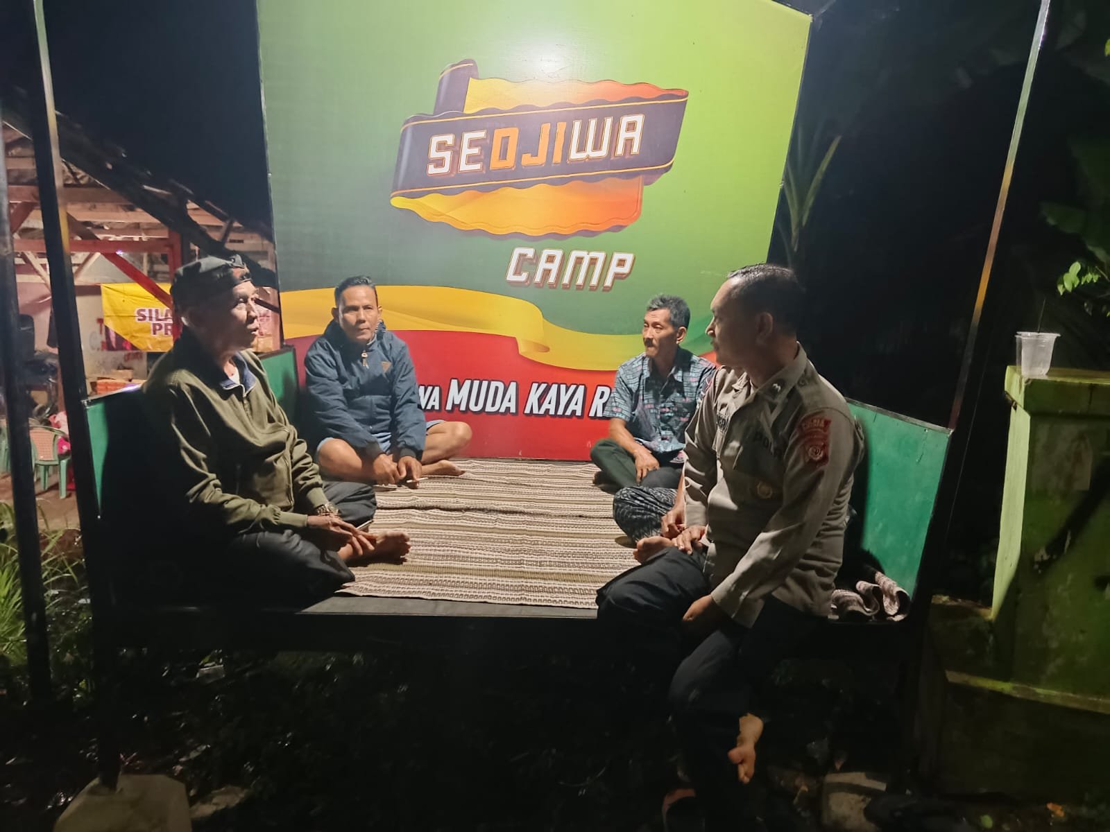 Sampai dengan bhabinkamtibmas Polsek Tegalwaru sambang warga di Poskamling kampung Kirewok Desa Cintalanggeng itu berlangsung.
