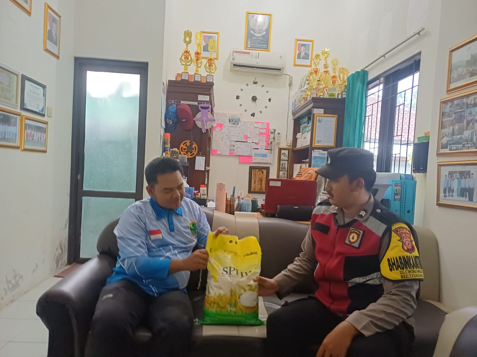 Jajaran personil Polsek Tegalwaru sambangi masyarakat untuk menjajakan beras secara langsung.