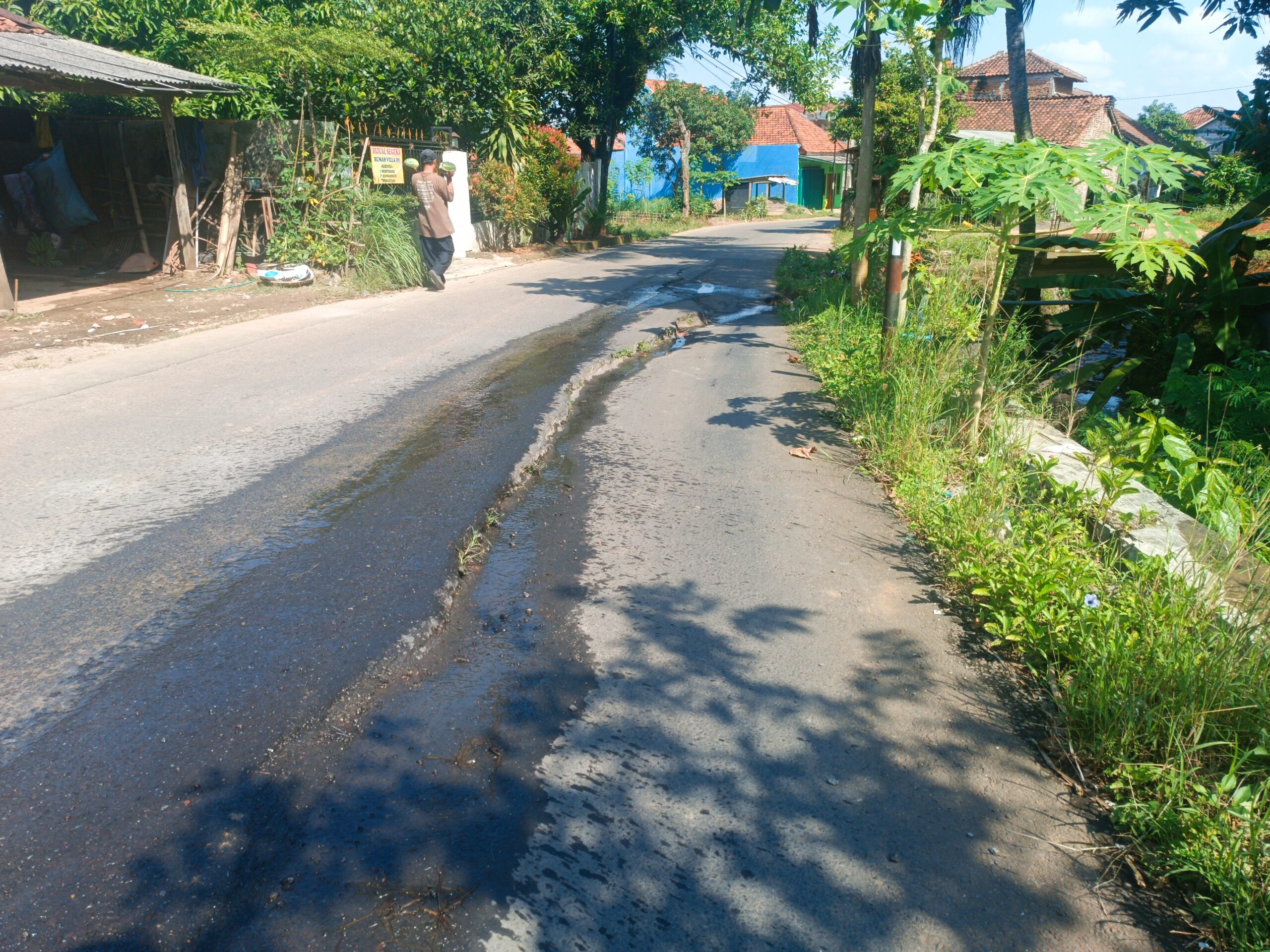 Kenapa! Karena jalan utama persis di belokan sebelum warung Karedok di jalan raya curug Cigeuntis itu, jalan nya alami Jomplang dan dikhawatirkan picu kecelakaan.