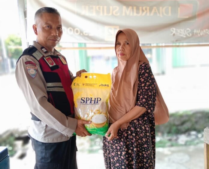 Jajaran personil Polsek Tegalwaru terus distribusi beras murah langsung dijajakan ke masyarakat secara langsung.