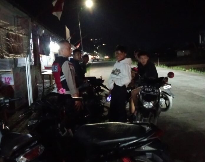 “Tempat tongkrongan warga pun kami sambangi untuk sampaikan pesan Kamtibmas kepada masyarakat,” Kata Kapolsek.