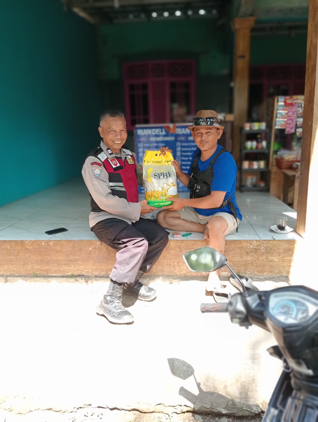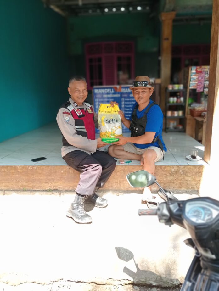 Jajaran personil Polsek Tegalwaru sambangi masyarakat untuk menjajakan beras secara langsung.