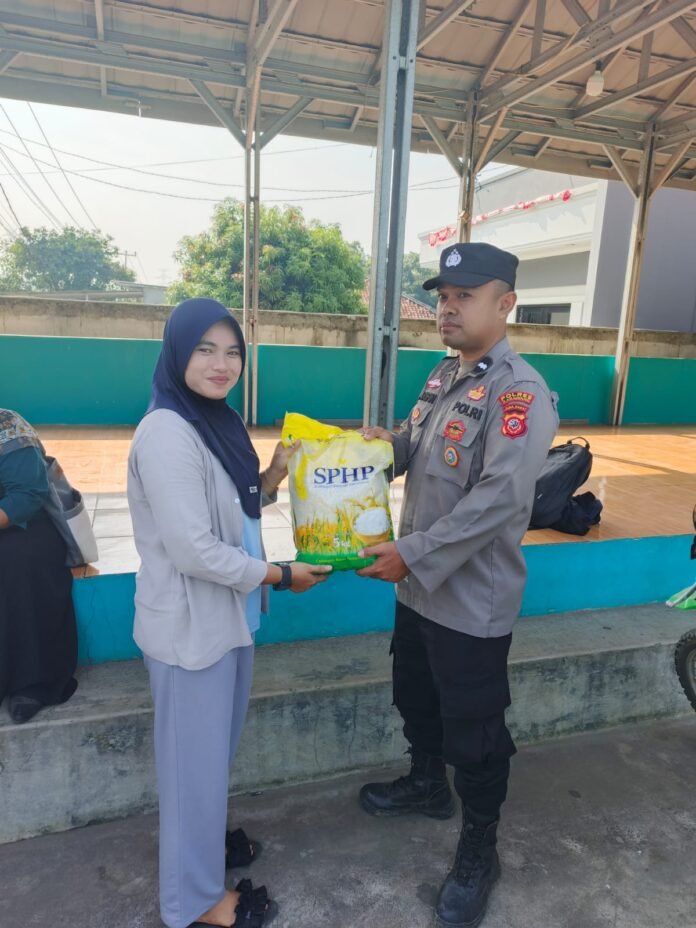 Bahkan berjalan langsung sambang warga,Personil Polsek Tegalwaru menjual beras murah.