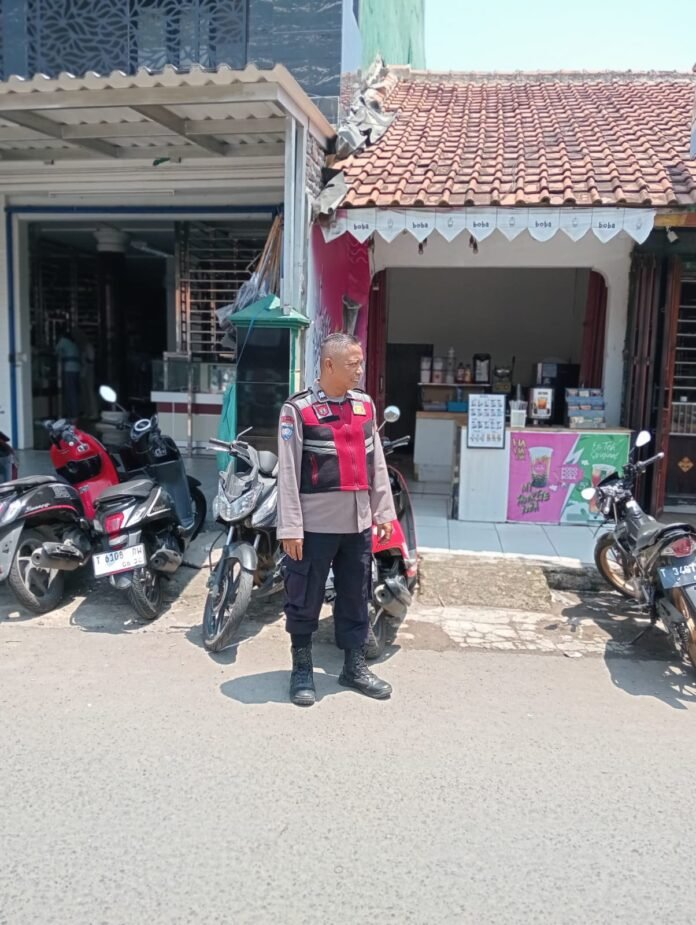 Intensif, jajaran personil Polsek Tegalwaru giat patroli siang dan monitoring areal parkir kendaraan roda dua yang ada di wilayah pasar tradisional Loji.