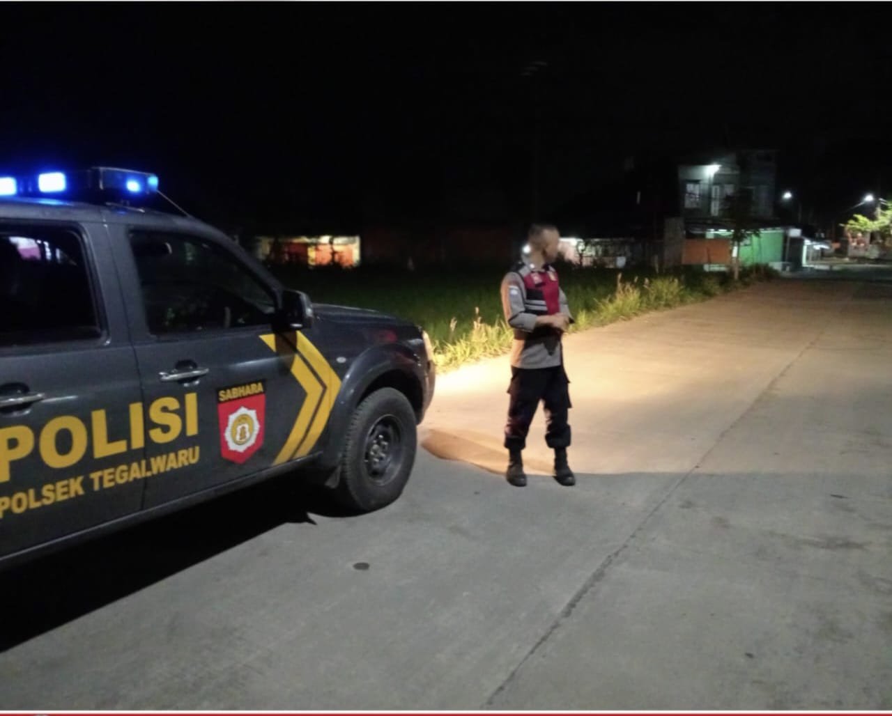 Dengan seksama,jajaran personil polsek Tegalwaru melaksanakan patroli reguler baik siang dan malam.