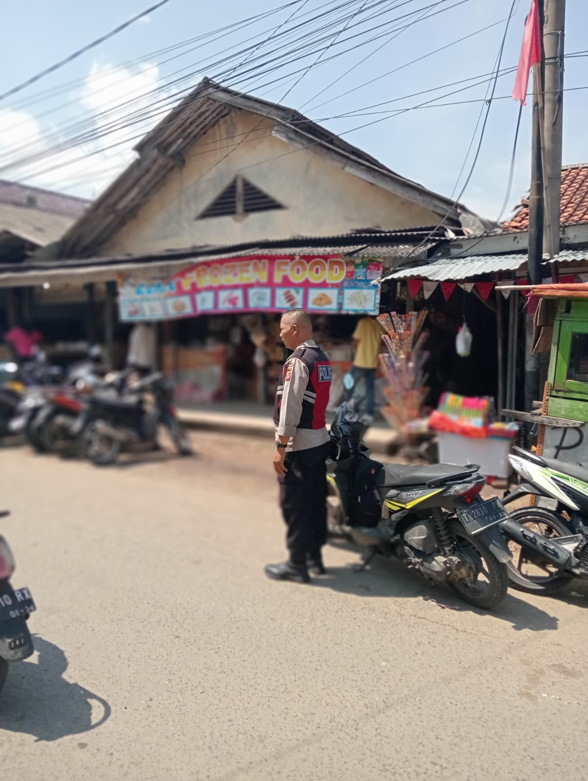 Intensif, jajaran personil Polsek Tegalwaru giat patroli siang dan monitoring areal parkir kendaraan roda dua yang ada di wilayah pasar tradisional Loji.
