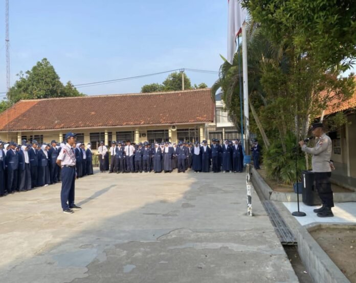 Karawang,bukaberita.co.id.- Berlangsung di lapangan upacara, Pelajar SMP PGRI Loji Tegalwaru di beri sosialisasi perihal hukum oleh Kanit Binmas Polsek Tegalwaru Polres Karawang Polda Jabar. Senin (20/10) pagi tadi.