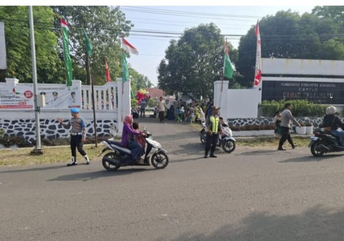 Personil Polsek Tegalwaru Polres Karawang Polda Jabar melaksanakan patroli siang dan pengaturan lalu lintas.
