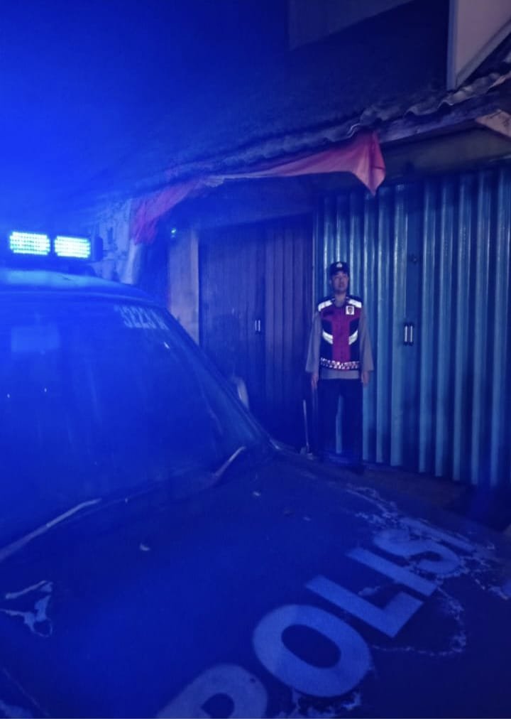 BerandaDAERAHPertokoan di Loji Diperiksa Kuncinya oleh Personil Polsek Tegalwaru pada Patroli Malam