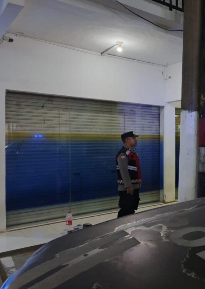 Salah satu sasaran patroli dini hari pun menyasar kantor bank BJB Loji dan memastikan aman dari aksi kejahatan.