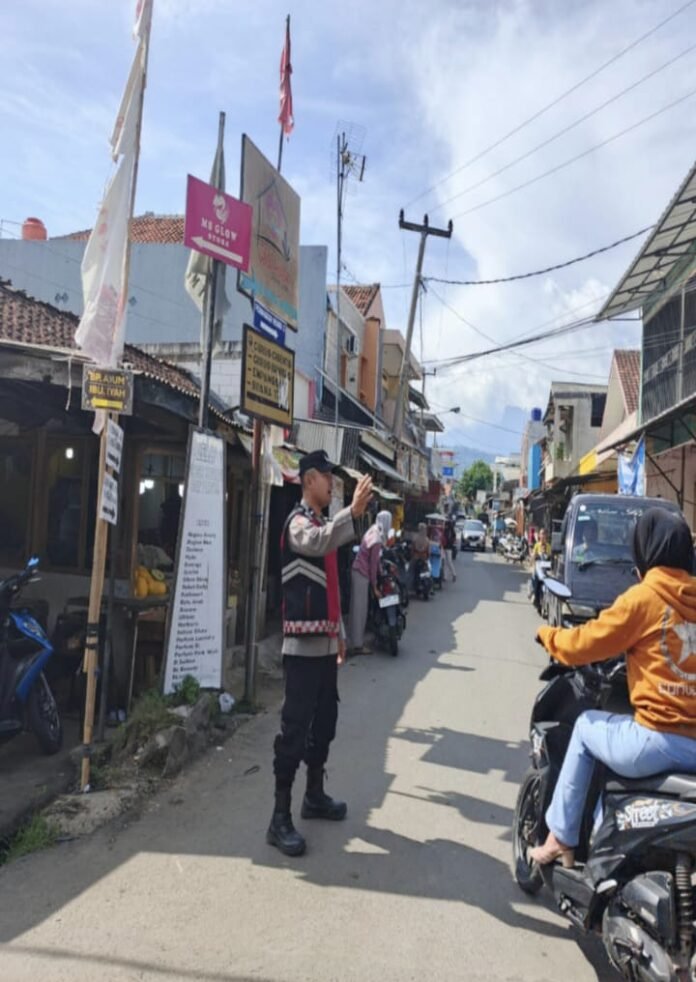 Cegah Kemacetan di Perempatan Pasar Loji, Sigap Personil Polsek Tegalwaru Giat Patroli Siang