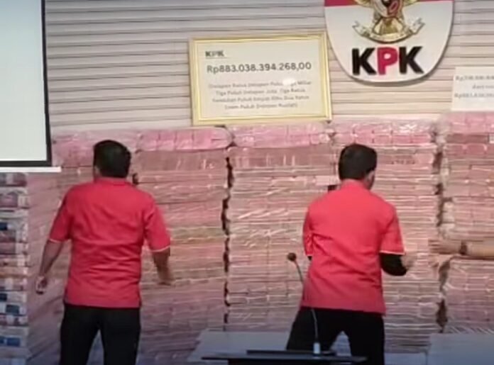 Jakarta, bukaberita.co.id – Dalam konferensi pers di Gedung Merah Putih KPK, KPK menampilkan uang Rp300 miliar sebagai simbol bahwa telah menyerahkan aset rampasan negara kepada PT Taspen Persero. Total nilai tersebut mencapai Rp883 miliar dan telah ditransfer sepenuhnya.