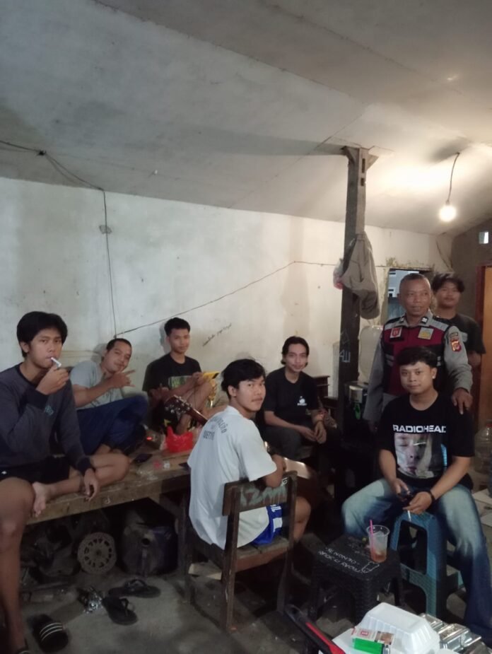Personil Polsek Tegalwaru edukasi anak muda Desa Cigunungsari agar peduli dan waspada aksi kejahatan serta bersama jaga kamtibmas.