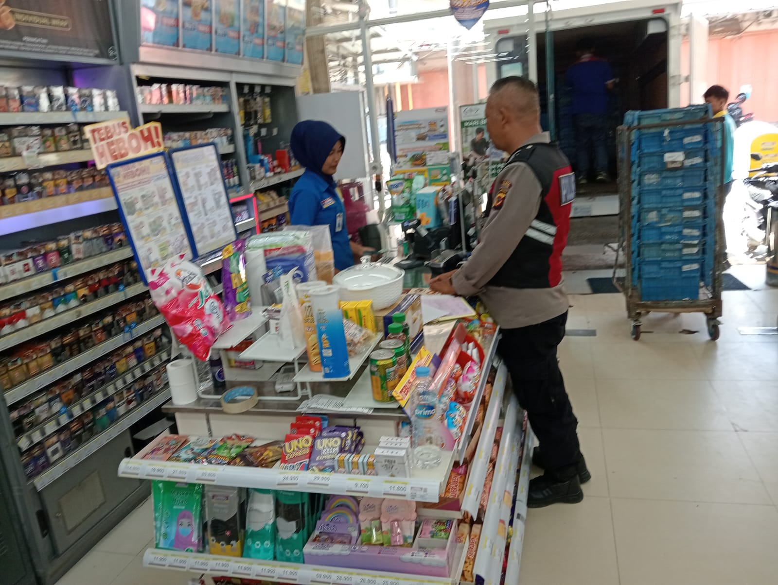 Personil Polsek Tegalwaru edukasi penjaga sebuah minimarket secara dialogis dan humanis agar waspada dari aksi kejahatan dan potensi potensi nya.