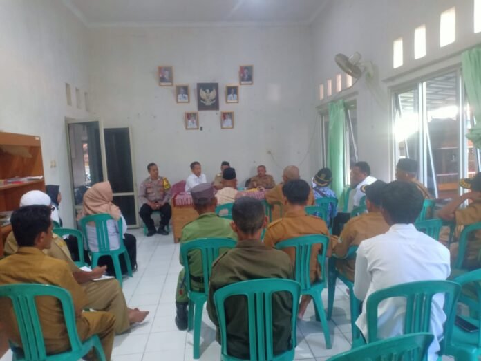 Bhabinkamtibmas Polsek Tegalwaru Ikuti Rapat Minggon di Desa Cigunungsari Imbau Waspada