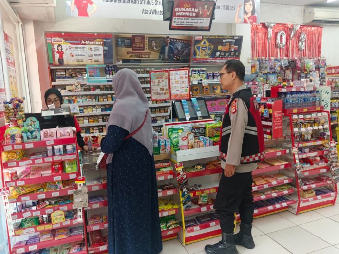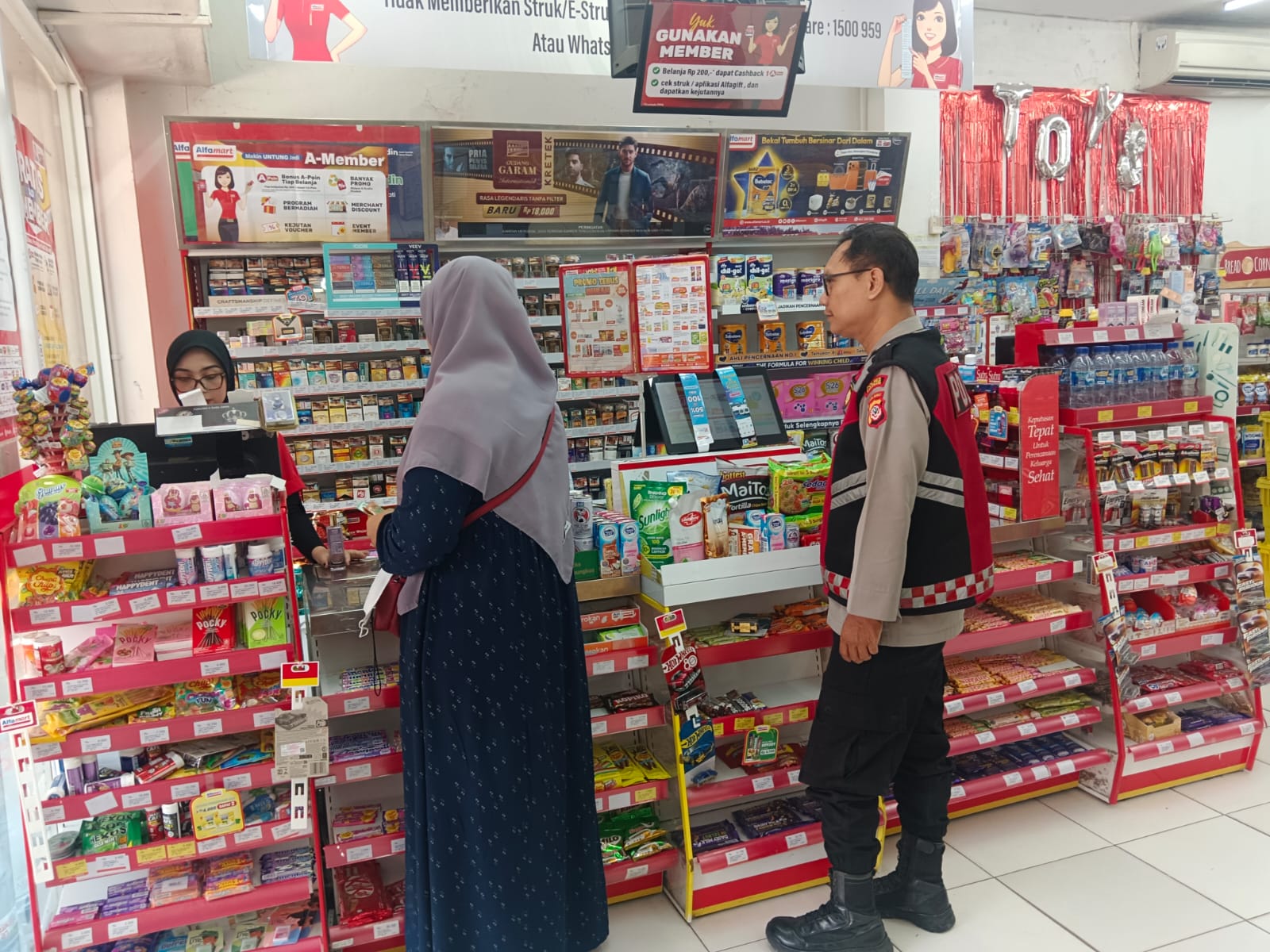 Personil Polsek Tegalwaru edukasi penjaga sebuah minimarket secara dialogis dan humanis agar waspada dari aksi kejahatan dan potensi potensi nya.