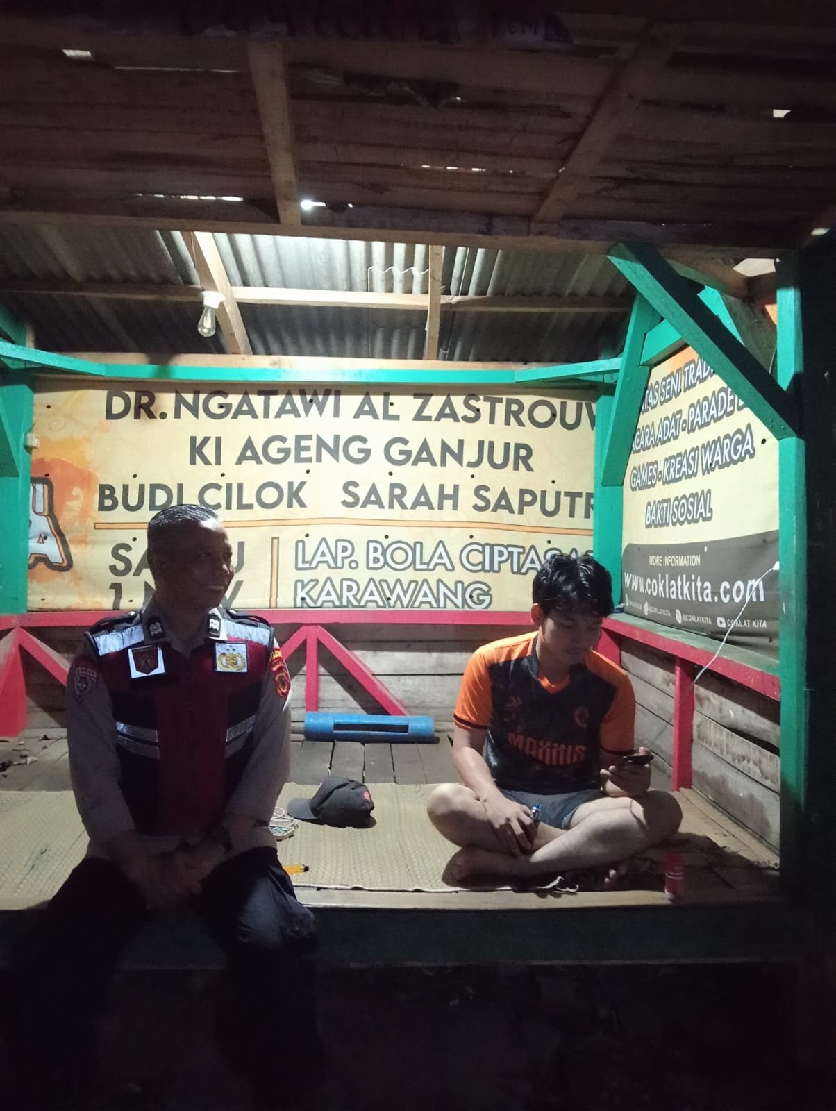 Dengan santai dan sambil ngopi Bhabinkamtibmas Polsek Tegalwaru pun melaksanakan tugasnya sebagai pembina masyarakat.