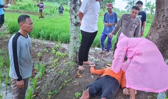 Kejadian berlangsung sekitar pukul 15.00 WIB ketika dua petani, Karso (57) dan Tari (60), sedang bekerja di sawah.