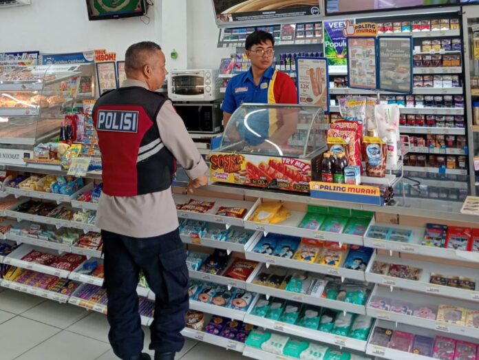 Bahkan memastikan aman, Personil Polsek Tegalwaru sambang minimarket di wilayah kampung Loji Desa Cintalaksana imbau pemilik toko agar waspada.