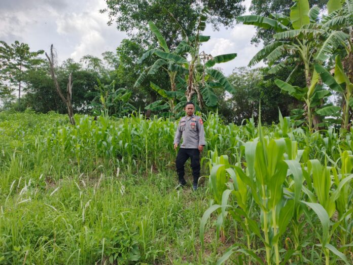 Personil Polsek Tegalwaru melaksanakan monitoring Ketahanan Pangan Jagung di Desa Kutamaneuh Kecamatan Tegalwaru.