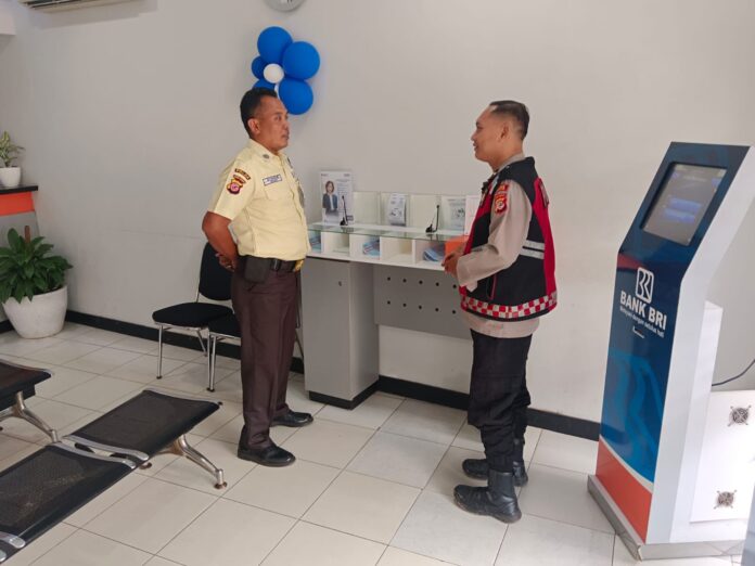 Selasa kemarin, (16/12) berlangsung di Bank BRI Loji, personil Polsek Tegalwaru edukasi penjaga agar waspada.