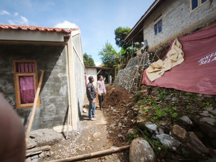 Bhabinkamtibmas Polsek Tegalwaru Giat Monitoring Perbaikan Rumah Warga Terdampak Longsor
