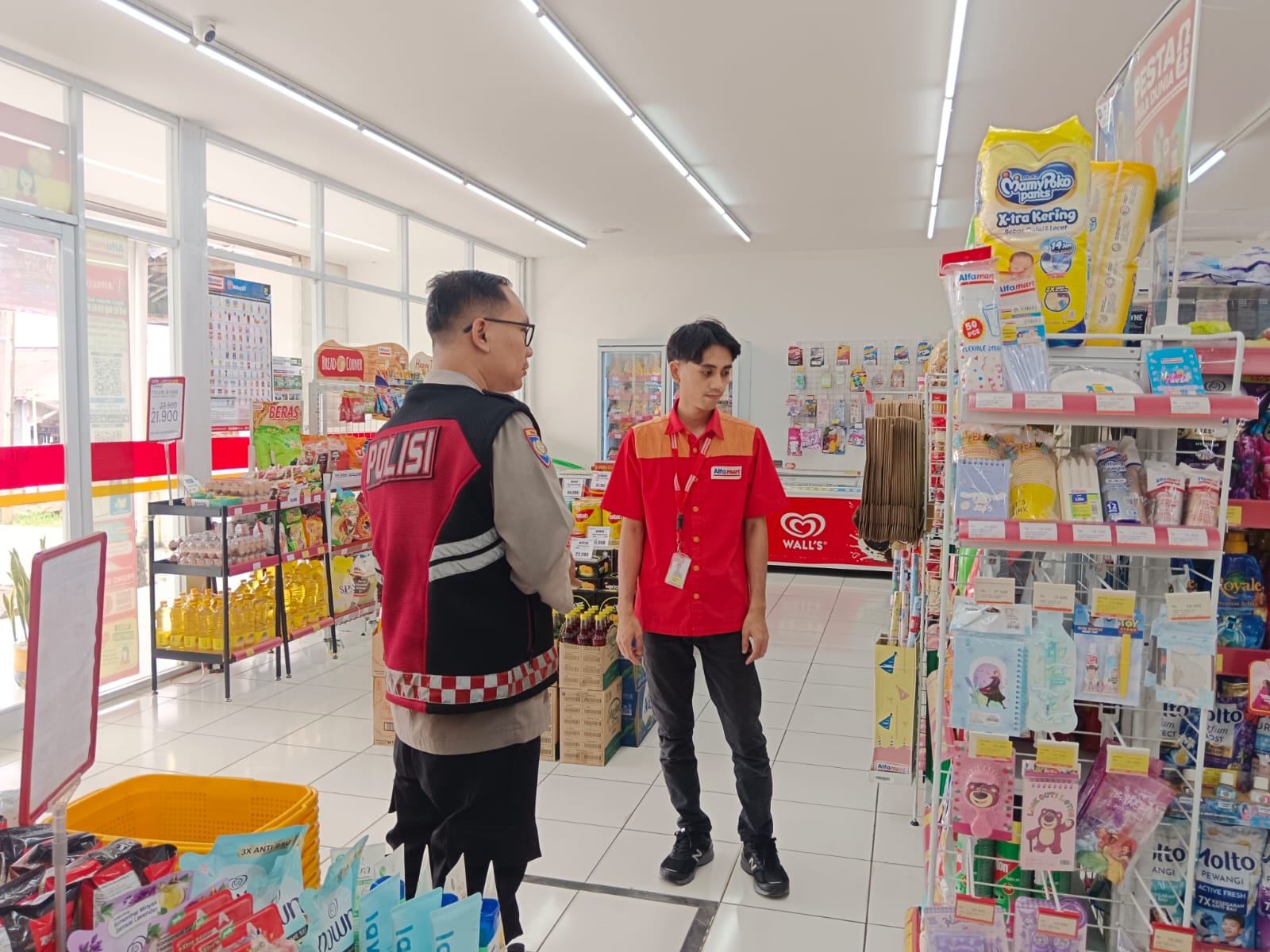 Bahkan memastikan aman, Personil Polsek Tegalwaru sambang minimarket di wilayah kampung Bakan ngantai Desa Cintalaksana imbau pemilik toko agar waspada.
