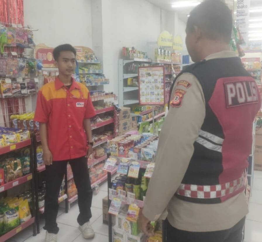 Personil Polsek Tegalwaru Ingatkan Pengelola Minimarket Cidoro Agar Waspada pada Patroli Malam