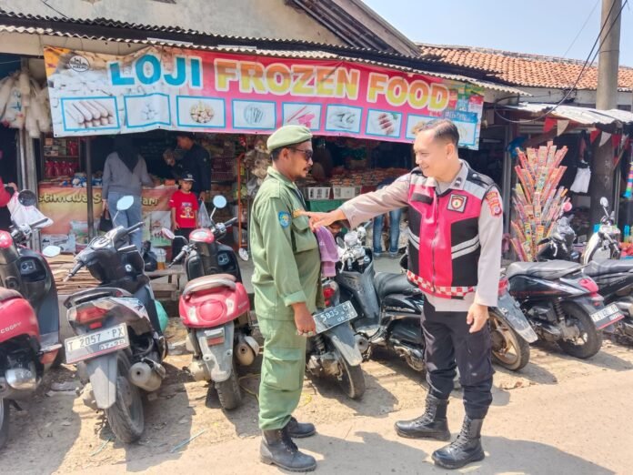 Bahkan personil Polsek Tegalwaru edukasi petugas linmas jaga parkir pasar tradisional Loji agar waspada.