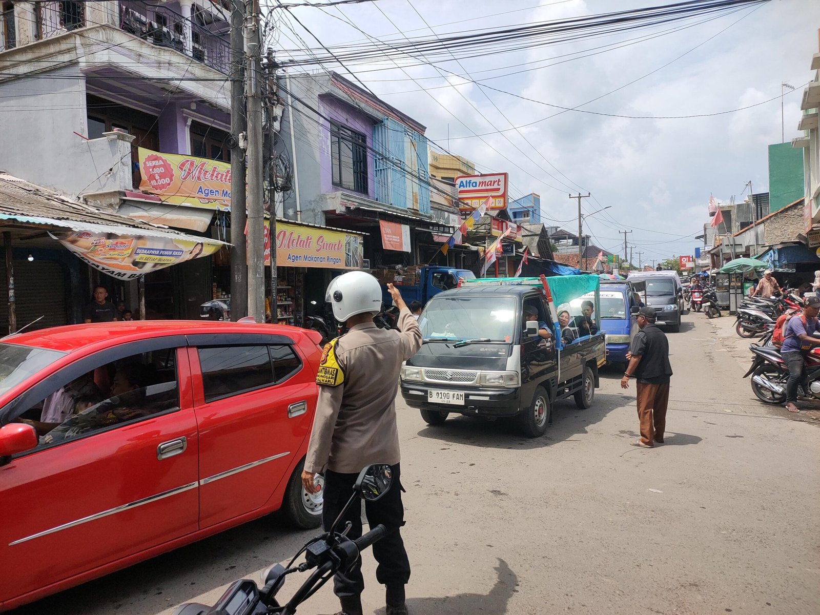 Nampak dari personil Polsek Tegalwaru Polres Karawang pun tengah melakukan pengaturan lalu lintas.