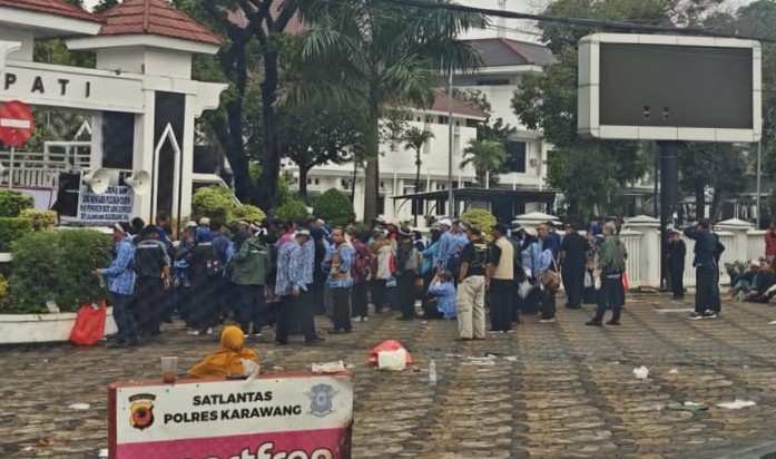 Ribuan Pensiunan Demo di Pemda Karawang, Tagih Hak Dana KORPRI