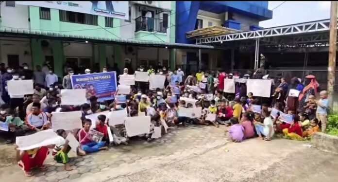 Aksi berlangsung di Jalan M Jamil, kawasan Bandar Serai. Dalam demonstrasi tersebut, para pengungsi membawa spanduk yang berisi sejumlah tuntutan. Mulai dari bantuan medis mendesak, dukungan tunai yang layak, pendidikan bagi anak-anak, hingga tempat tinggal dan kondisi hidup yang lebih manusiawi.