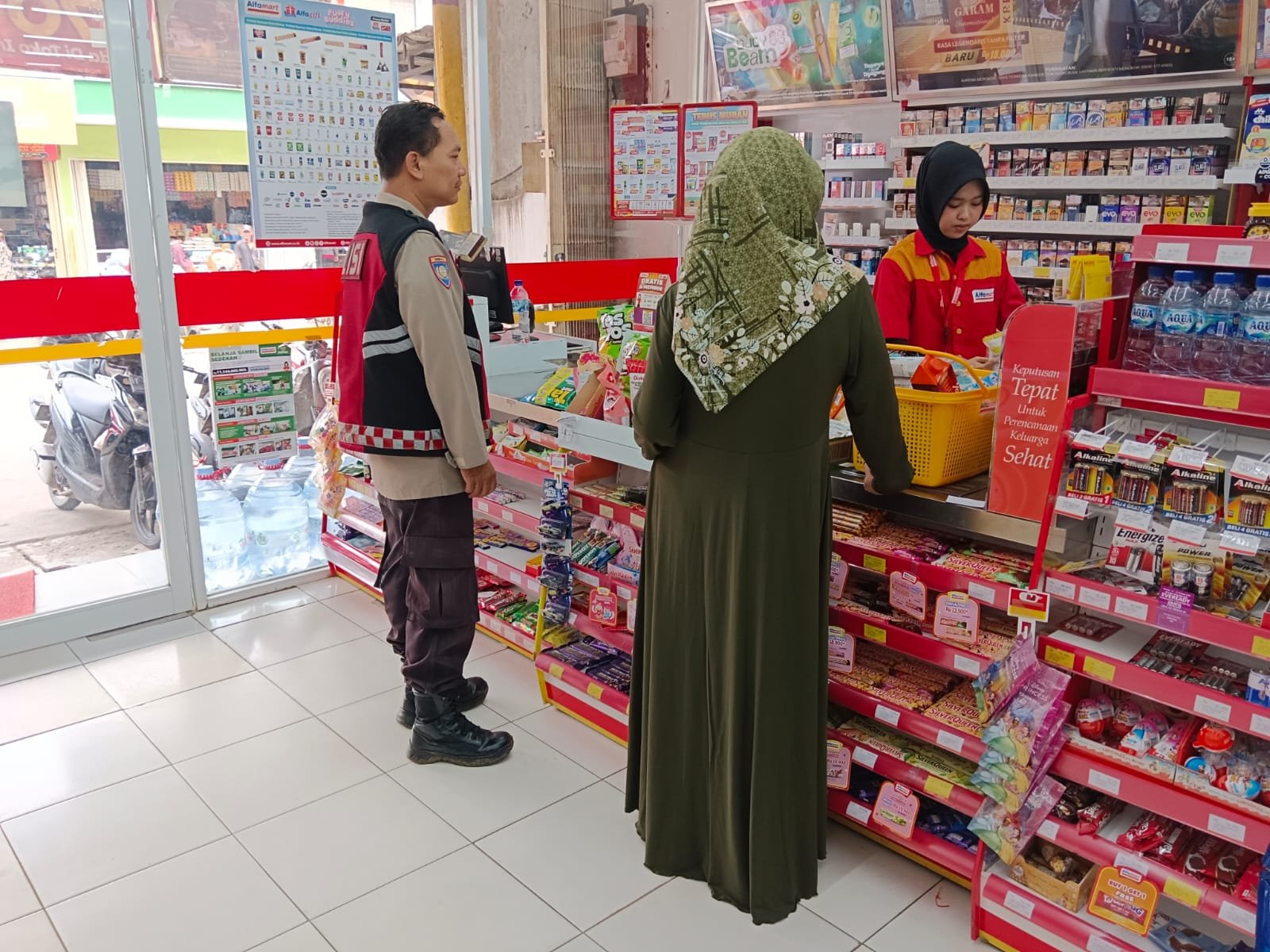 Personil Polsek Tegalwaru imbau agar penjaga minimarket agar waspada terhadap aksi pencurian yang bisa saja terjadi pada siang hari.