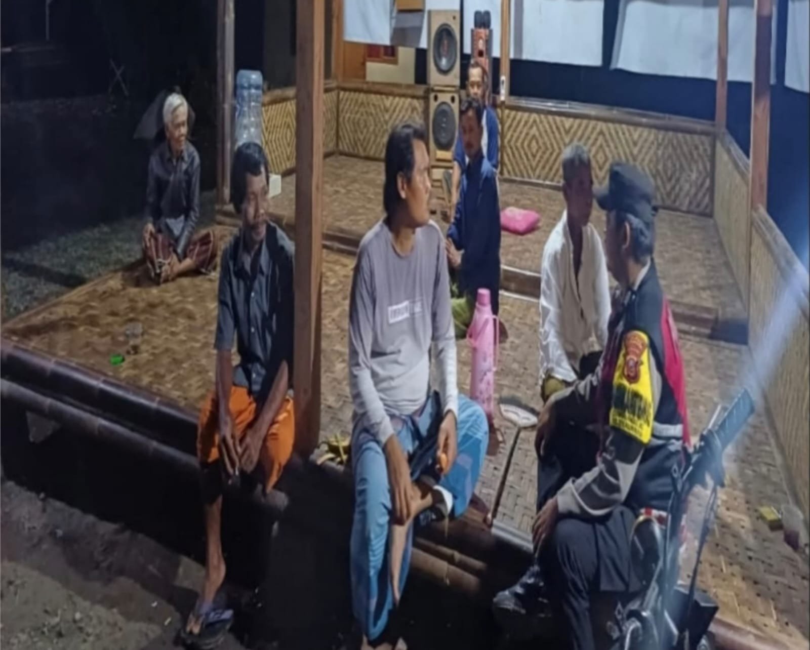 Sampai kegiatan ngawangkong di Poskamling Kirewok Desa Cintalanggeng berlangsung situasi aman dan lancar. (Faizal)