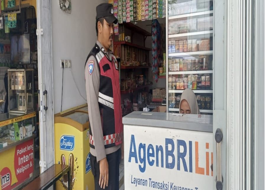 Personil Polsek Tegalwaru Patroli Siang Sambang BRI Link Pasar Loji Edukasi Warga Waspada